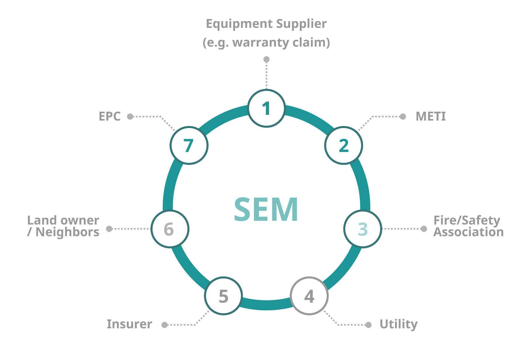 Apart from the O/M service, SEM can be a one stop service point, assist investors in coordinating with all relating parties including equipment suppliers, METI, local fire prevention department and safety association, the utility, insurance company, landowners, neighbor, and contractors.